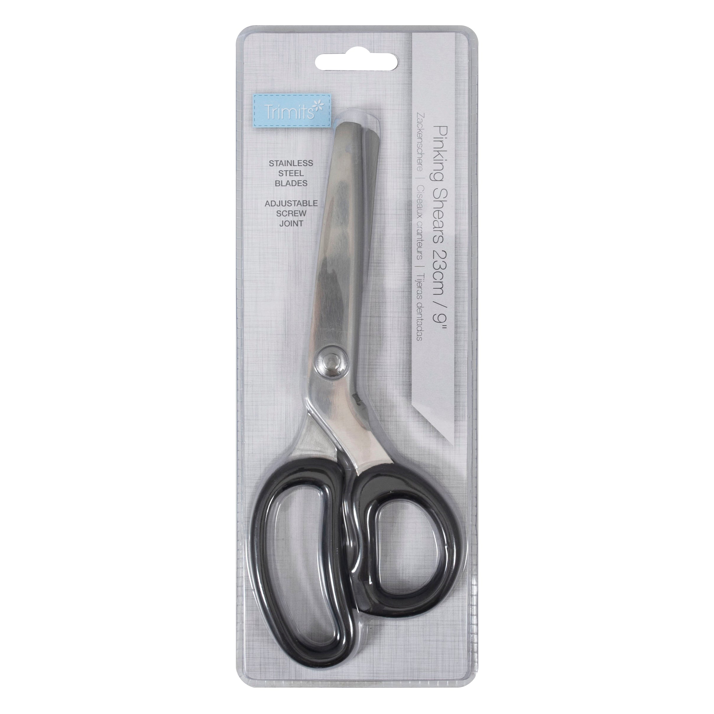 The 23cm (9") shears create a distinctive zigzag edge that helps prevent fabric from fraying, making them ideal for medium-weight woven fabrics including cottons, calico, patchwork fabrics, wools, and felts. They feature an adjustable screw joint for precise tension control and generously sized handles for a comfortable grip.
