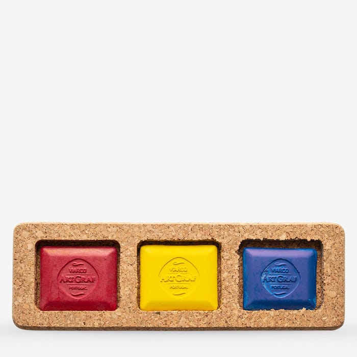 This primary colour set contains Magenta, Yellow, and Blue — three bold, versatile shades that between them offer an enormous range of mixing possibilities. The three blocks come presented in a cork casing and each measures 4.45 x 5.08cm.