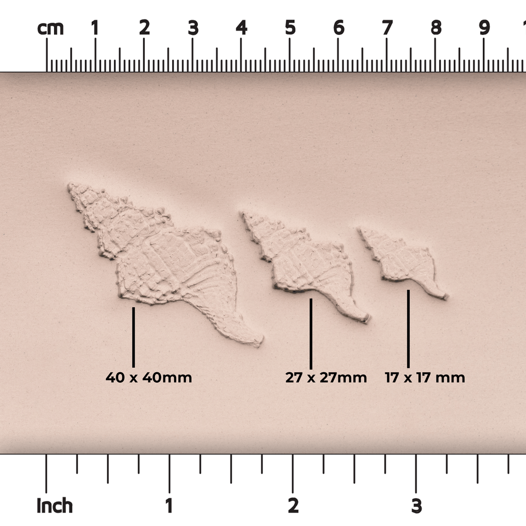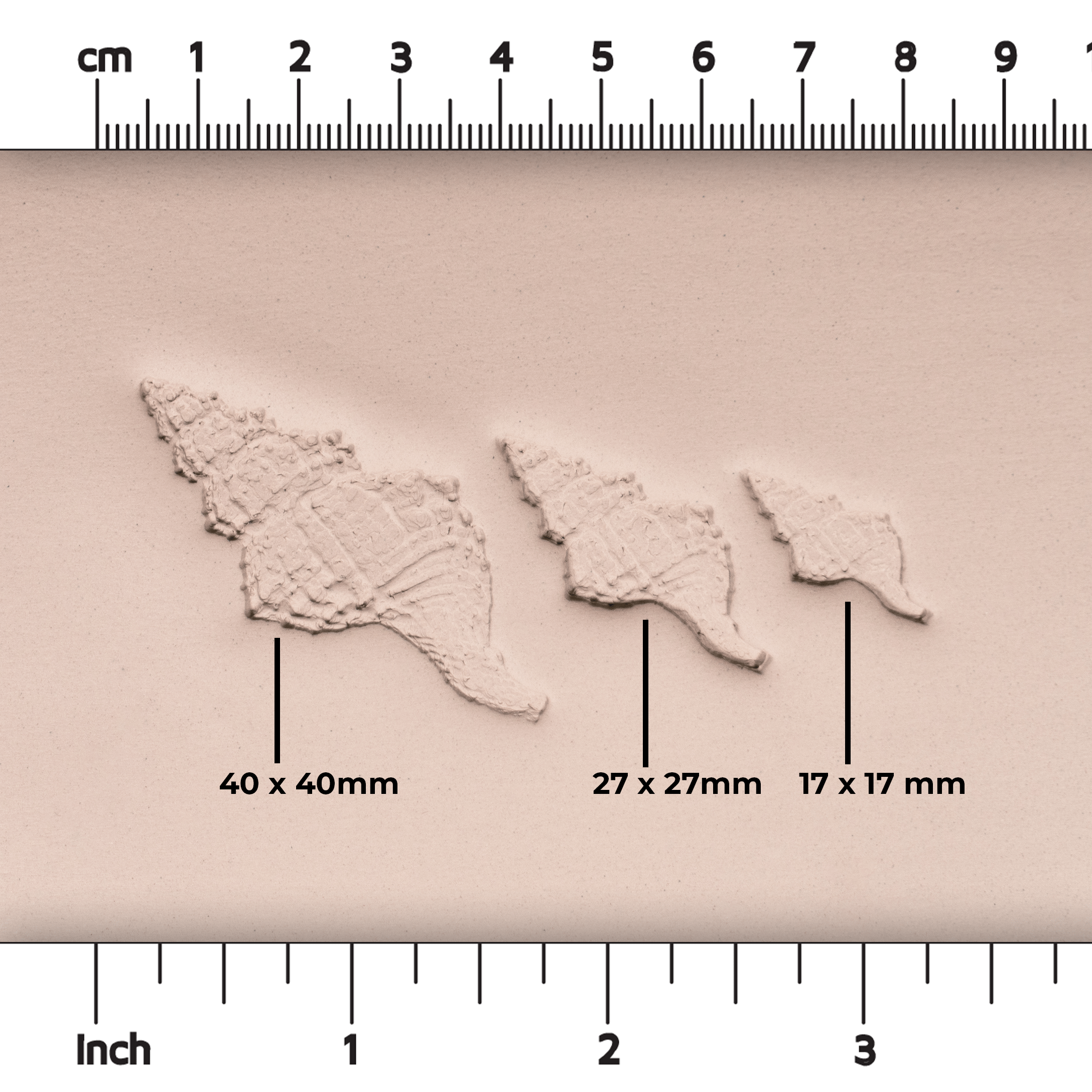 This is a conch shell stamp available in three sizes that is perfect to use on any dish or piece that you are creating that you want to have an ocean, beach, or fossil theme.