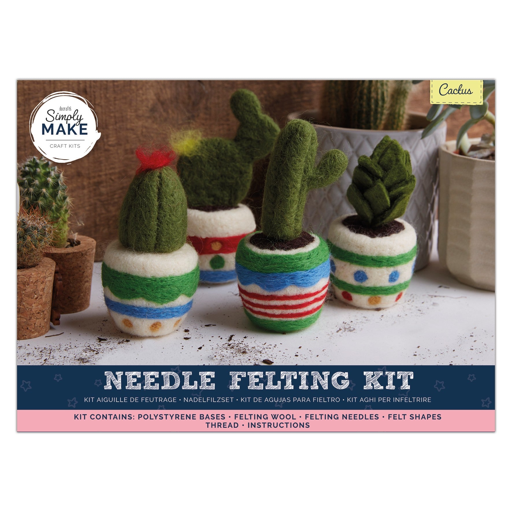 Everything you need to create your own Needle Felted decorations of Cacti. Includes wool roving, felting needles, polystyrene base, accessories, thread and instructions.