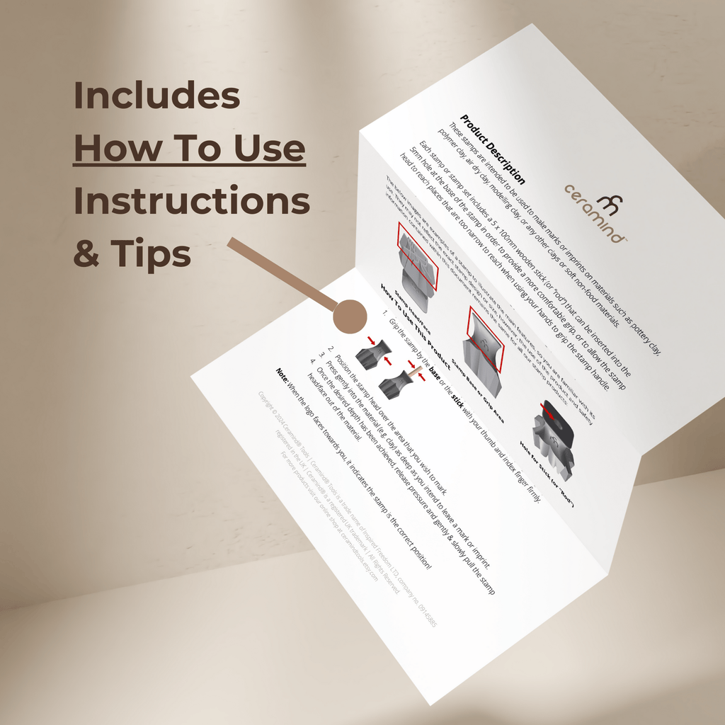 ☑️ Can be used with pottery & ceramic clay, polymer clay, or any soft material that leaves impressions