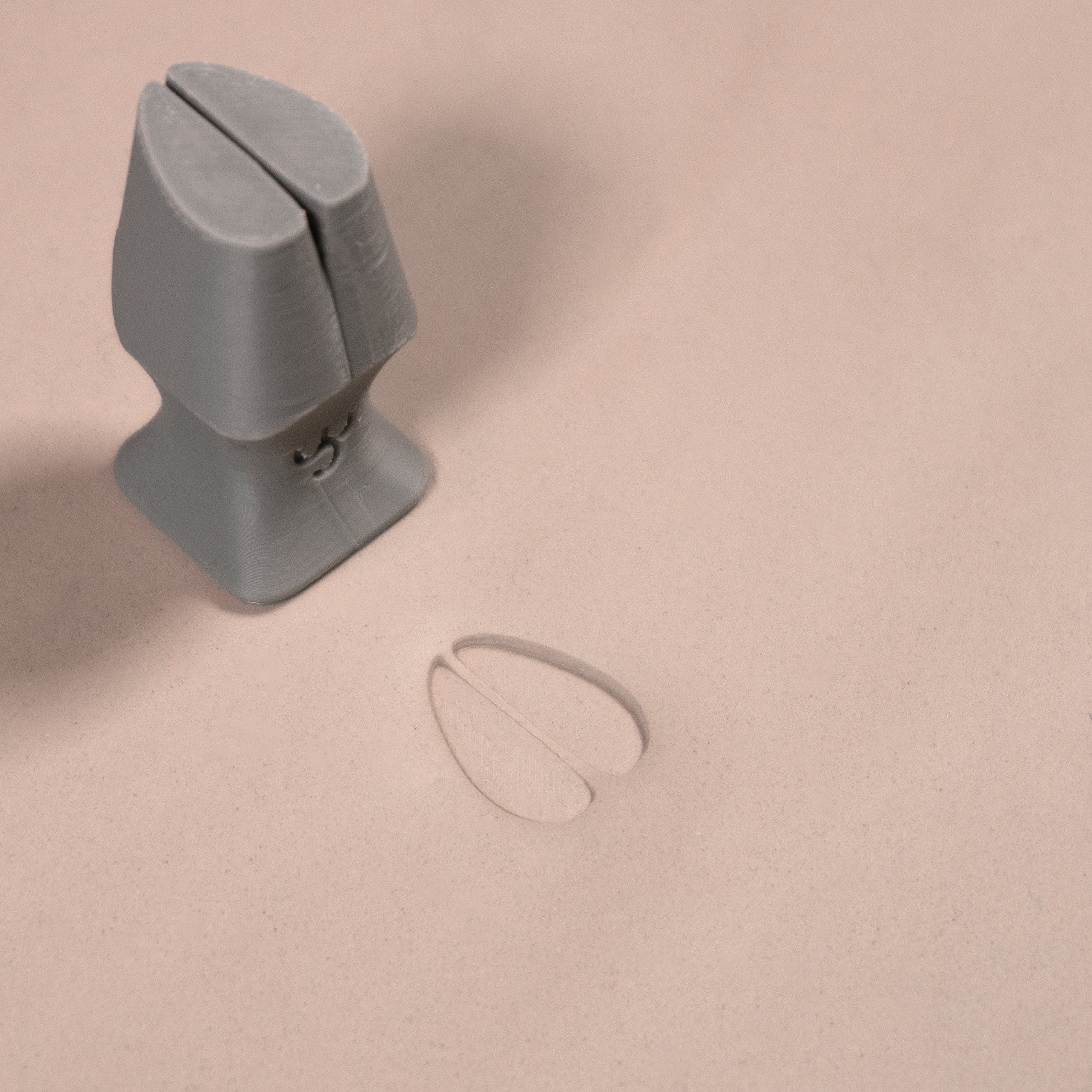 A medium sheep hoof stamp (style #1) that is perfect for imprinting into different types of clay and adding a unique touch to your latest pottery & ceramics project.