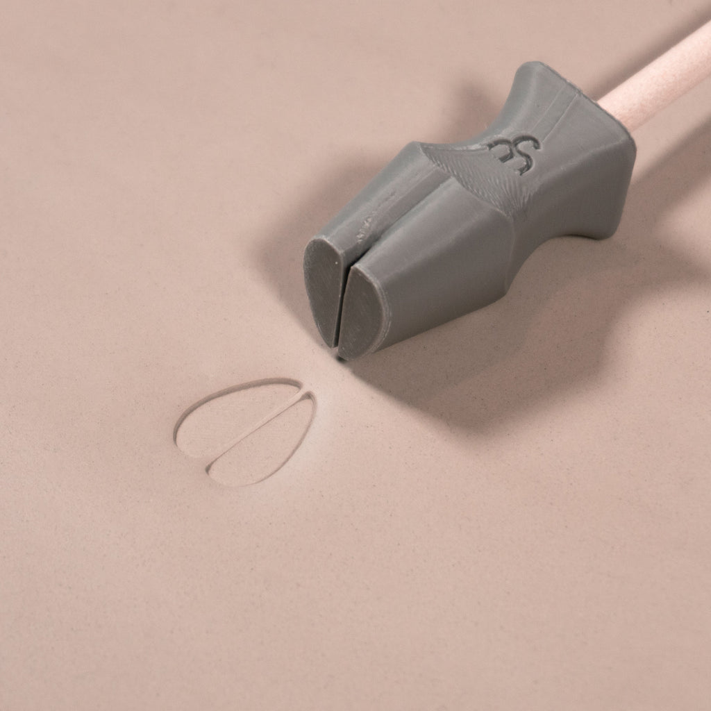 ☑️ Angled so the stamp head easily removes from the clay and doesn't get stuck
